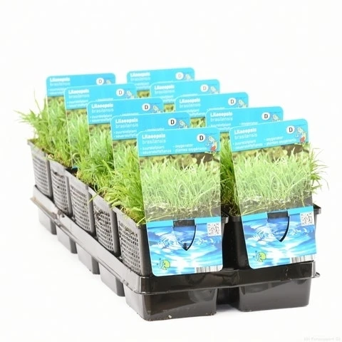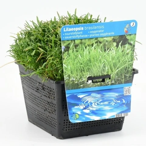 Lilaeopsis brasiliensis (Grasplant) is een onderwatergrasje, dat zich langzaam aan in de breedte verspreid. Deze grasplant staat graag op een zonnige plek, de diepte is afhankelijke van het licht wat deze plant nog krijgt. Lilaeopsis brasiliensis heeft een waterzuiverende werking in de vijver. In de periode juni tot en met oktober krijgt de grasplant kleine groenwitte bloemetjes.