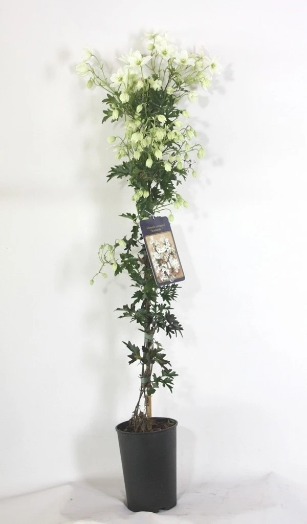 Clematis ‘White Abundance’ is een prachtige vroeg bloeiende groenblijvende Clematis. Bloeit van maart t/m april met een zee aan witte bloemetjes. De bloemknoppen openen groen en verkleuren langzaam naar wit. De bloemen zelf zijn helder wit met crème-groen hart. De Clematis‘White Abundance’ is familie van de Clematis ‘Avalanche’. Het blad is wat fijner en dieper ingesneden. De bloemen zijn iets groter. Deze Clematis groeit niet snel en is dus bij uitstek geschikt voor kleinere rekken, pyramides of (gaas)schuttingen. De plant bereikt 2 meter hoogte. Na de bloei is de Clematis ‘White Abundance’ nog erg mooi door de pluizige zaaddozen. Snoeien kan direct na de bloei maar is niet noodzakelijk.
