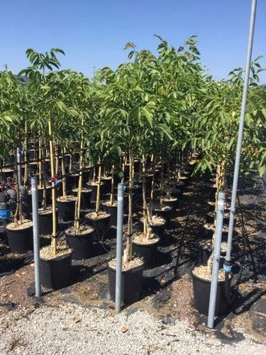Juglans regia ‘Franquette’ (Walnoot) is een oude, betrouwbare, Frans variëteit. Het is een sterke en gezonde groeier, die ongeveer 20-30 meter hoog kan worden. De mannelijke en vrouwelijke bloemen verschijnen tegelijkertijd (ná de bladontwikkeling). De boom kan dus zichzelf bestuiven, maar voor een goede bestuiving is het beter een ander ras in de buurt te hebben (bijvoorbeeld Juglans regia ‘Buccaneer’). Juglans regia ‘Franquette’ is vruchtdragend vanaf jonge leeftijd. De notenopbrengst is goed; de noten zijn mooi gevormd en goed van smaak.